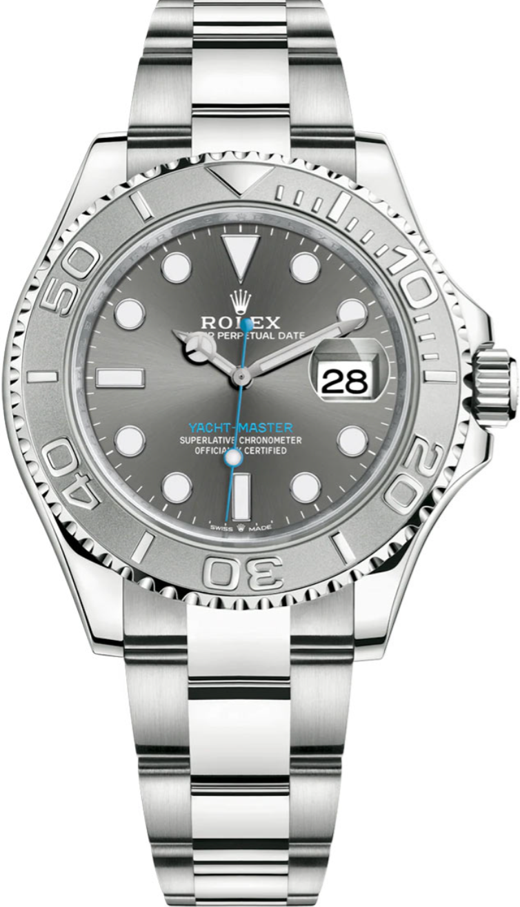 Unworn 2024 40mm Stainless Steel 126622 Rolex Yacht-Master Rhodium Dial with a Platinum Bezel on an Oyster Bracelet.