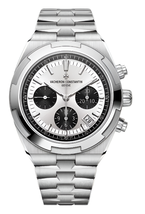 Unworn 2022 42.5mm Stainless Steel 5520V/210A-B686 Vacheron Constantin Overseas Chronograph Silver Dial with a Stainless Steel Bezel on a Stainless Steel Bracelet.